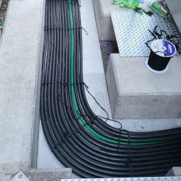 官公庁施設や教育施設、工場、店舗、事務所、病院等のあらゆる建設物の屋内外電気設備の施工を行っております。変電設備等の配線、大型機器の制御回路の計装工事、幹線工事、様々な建物のコンセントや照明器具の取り付けなど、電気にまつわる様々な電気工事に携わらせて頂いております。
